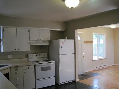 Bring your rose colored glasses and your tool belt! Large great room with vaulted ceiling, skylights and a fabulous stone fireplace with insert Kitchen is on one side of the great room and slider to deck is on the other. Large yard and 2-car garage with shop area too!