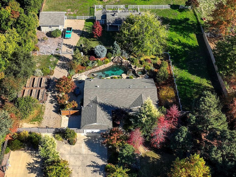 Beautifully maintained, move-in ready horse property on over 2 acres. Fully remodeled with updated kitchen & bathrooms, crown molding, and gorgeous flooring throughout. Formal living and dining rooms are perfect for entertaining. The spacious kitchen features a 6-burner range, farmhouse sink, and high-end cabinets. Cozy up by the gas fireplace in the open-concept family room, complete with built-in surround sound. Laundry room offers abundant storage and a utility sink. Step outside to a backyard oasis with a luxurious saltwater pool, waterfall, Baja shelf, hot tub, six raised garden beds, and a basketball court. In summer enjoy the abundance of delicious apricots from the mature trees and pick fresh blackberries from large thornless bushes. In the fall you will have an abundant crop of large pomegranates! The property includes a 4-stall horse barn with tack room, two paddocks, automatic water bowls in all stalls, two irrigated pastures, plus a smaller barn for smaller animals or chicken coop. Functional spaces abound with a detached two-car workshop and main garage, both with epoxy floors and built-in cabinets, plus spacious paved areas and driveway. Just minutes from Roseville, American River, Folsom Lake, and I-80.