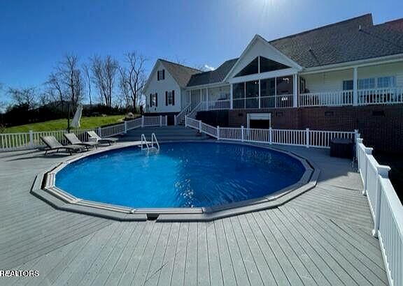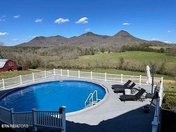 Back on market, due to buyer contingencies unsatisfied. Tennessee Country Home sitting on 5 ac., with Gorgeous Mtn. Views. Beautiful landscaping greets you, along with an abundance of outdoor entertaining space. Master Suite is on main level w/ built in shelving with desk. The Kitchen has all modern appliances with lots of cabinet space plus a separate pantry. The large granite island will be a centerpiece of this open floorplan home, when entertaining friends & family. Outside the great room is a screened porch overlooking the pool, pasture and mountains. Upper level has 2 bedrooms, a full bath ,plus bonus room, that could be a 4th bedroom. Downstairs has a theater room with overhead projector. Wet bar for entertaining. Downstairs has a Rec. room w/ full bath. Central vac. Pecan Floors on main and 2nd, LVP in lower level.