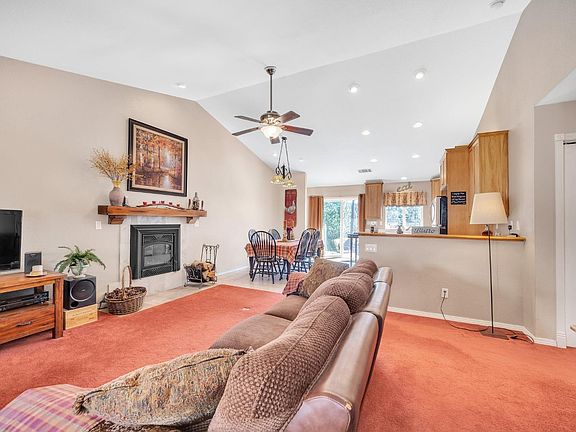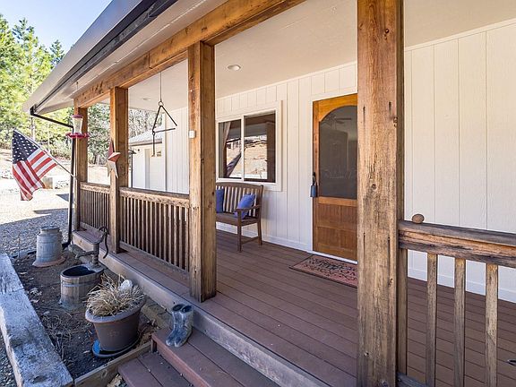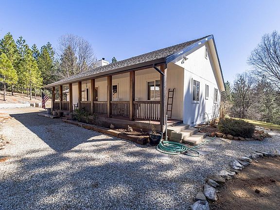 Be there first - almost every room has windows letting in natural light; great room with views and wood stove overlooks kitchen/dining area or utilize central heat and/or air. Relax in the primary bedroom with views of trees. Lrg garage with heater vent so you can tinker in the winter. Acreage is manicured and boasts raised garden beds protected from deer with fencing, Lizard Hill Vineyard with grape wines, fruit trees and 1500 gal rain water holding tank for irrigation. From the viewing area enjoy views of the trees or relax on the porch and watch friends play bocce or enjoy the hammock nestled between the trees. Separate wood shed, well equipment shed, additional flat area for barn or additional structure. Multiple gates for ingress and egress. Property bounded on 3 sides by Sierra Pacific - they maintain fencing. Underground utilities to house. Located near wineries, Kirkwood skiing and local shopping. Unique special property you won't want to miss.