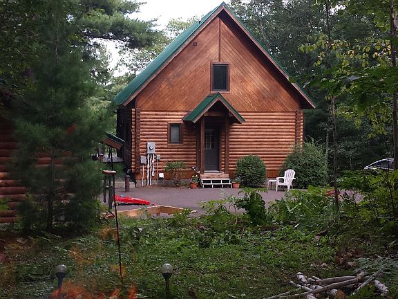 Log home with finished walkout lower level. Two bedrooms, 2 1\2 baths with loft level that has 3 built in queen beds and 1\2 bath. Wooded lot with 142 feet of lakeshore on quiet fish and swim lake. 2 1\2 car detached garage, cable tv and high speed internet.