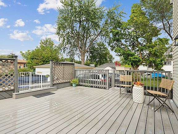 Welcome to this "related living" perfect for an in-law arrangement living, conveniently located close to restaurants/shopping, highways (55/294, Harlem), and neighborhood parks. The rehabbed main level features all-new luxury vinyl flooring in 3 bedrooms, a bathroom, an open-concept kitchen/dining/living room, and a mudroom that leads to the back deck and pool. The chef's kitchen is a recent renovation with light gray cabinets complemented by a large, dark-gray island, gorgeous quartz countertops, stainless steel appliances, an elegant glass backsplash, a wall of pantry-like cabinets with pull-out drawers, and a built-in wine rack. The family room boasts a window wall for loads of natural light, and a modern feature wall with decorative trim. Use the front or back staircase to get to the enclosed second level, featuring 2 bedrooms, a bathroom, and a large living room. The full, unfinished basement is ready for fresh ideas to finish the newly cleaned-out space. The 2-car detached garage is heated and air-conditioned, perfect for your craft/hobby space year-round. With brand-new siding, trex-like composite decking, an above-ground pool, extra-long driveway, and nearly 1,750 square feet of finished living space, this home is offered at an amazing value.