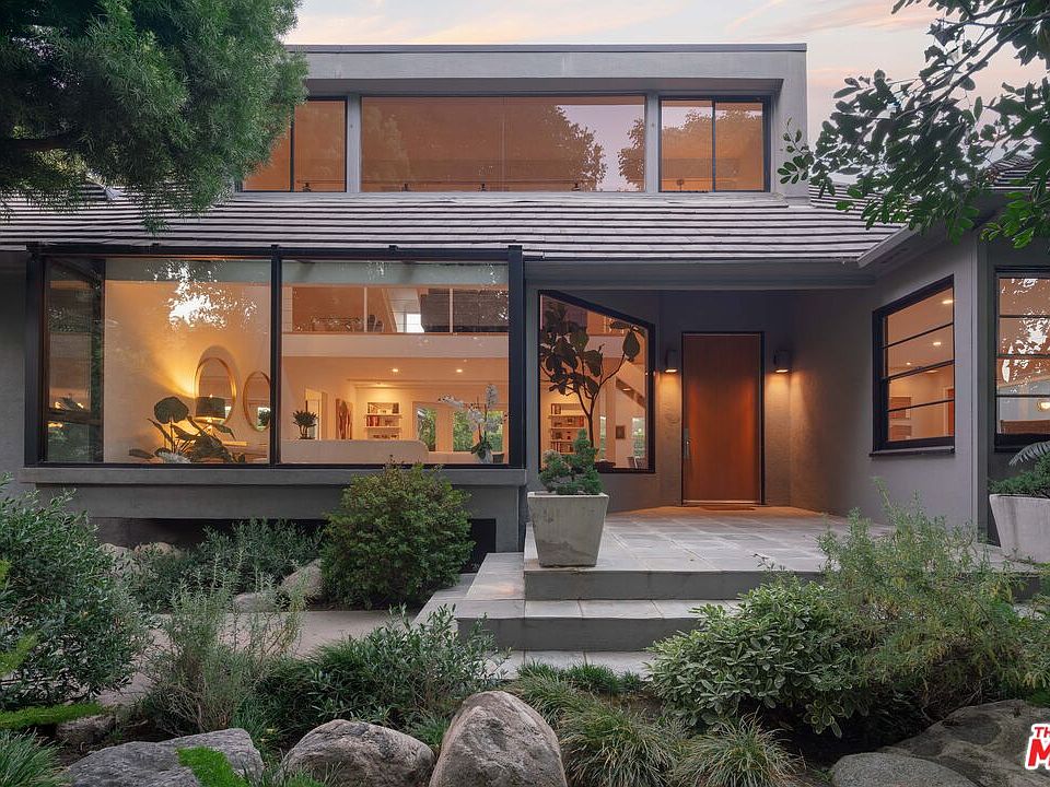 Take an express journey through the last century's design evolution here at bosky Woodrow Wilson Drive's best spot. Built in 1941 in the 'Minimal Traditionalist' style that anticipated postwar one-story houses, but with a steeply-pitched almost Norman roofline, the residence was expanded and opened to light and greenery with a loft-like intervention in the 1970s & '80s. One enters through a 2-story open-plan living room, with a mezzanine loft above. This space flows through into the dining area and a sun-filled family/media room to the left with its own hearth. The best of clean 1980s design with influences from the Streamline era continues in the expanded primary bath - part of a suite that, with its open beamed ceilings and orientation to the pool area, is classic California. The poolside elevation connects 1941 to 2025, as does the evocative prewar feeling of the completely rebuilt Cook's Kitchen open to the dining and family rooms. The successful balancing here of intimately-scaled bedrooms and subordinate areas to expansive space for large art pieces and entertaining is rarely so well achieved. Privacy at the property is close to complete, as the house is screened by carefully planned landscaping from the street and neighbors on a quarter-acre lot. A large auto court behind a gate off a shared driveway now features our new century's Minimalist best in the ADU by Luno Design Studio (2024). Hollywood at Home indeed: the sun deck over the ADU, in-ground spa and pool patio add places to sun-bathe while reading ... "Variety"; Didion; manga -- or Austen? As you prefer.