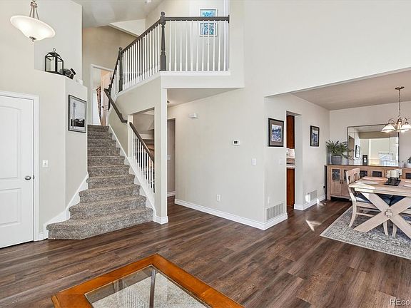 Welcome to this beautifully updated home in the highly sought-after Carriage Club neighborhood. With 4 bedrooms, 3 bathrooms, and 2,555 total square feet, this home offers a finished basement and a spacious backyard, blending modern updates with everyday comfort. Inside, you'll find a bright and open floor plan, enhanced by new windows that flood the space with natural light. The updated interior boasts new flooring throughout, soaring ceilings, and a cozy family room with a gas fireplace—perfect for relaxing evenings. The kitchen is designed for both function and style, featuring granite countertops, ample cabinet space, and stainless steel appliances. Upstairs, the primary suite offers vaulted ceilings, a walk-in closet, and a luxurious five-piece bath, while three additional bedrooms provide plenty of space. The finished basement adds flexibility with a spacious bonus room, ideal for a home office, gym, or playroom. Additional upgrades include a new furnace for energy efficiency and a newer garage door for added convenience. Escape to your backyard sanctuary, where a large patio, shaded by mature trees, and a lush landscape offer the perfect space for entertaining or relaxing. Located in one of Lone Tree’s most desirable communities, this home offers easy access to I-25, C-470, Park Meadows Mall, Douglas County Schools, scenic trails, parks, and golf courses.