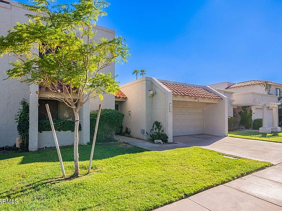 Rare opportunity in Scottsdale In Towne Villas—one of only two townhomes with dual primary suites! Just minutes from Old Town Scottsdale's world-class dining, shopping, art galleries, and nightlife. This 2-story gem features a spacious great room with AZ-style fireplace, flexible den/office space, and a bright kitchen with stainless appliances, pantry, and sunny atrium. Enjoy a large, private covered patio with a lush Meyer lemon tree! Both oversized suites offer walk-in closets and en-suites. Attached 2-car garage with built-ins and laundry. Newer roof, HVAC & appliances. Walk to shops, dining, and grocery. Community offers Heated Pool, Spa, lush common areas and no age restrictions.