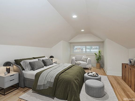 Celebrate the holidays in your new home with reduced interest rates! Welcome to this fully rehabbed, over-sized Chicago bungalow featuring 4 bedrooms and 2 bathrooms, plus an additional 2 bedrooms and 1 bathroom in a full basement in-law suite or Airbnb opportunity. This inviting home showcases a modern white, gray, and black design throughout. Enjoy spacious living areas, beautiful white cabinets, and a blend of hardwood and manufactured flooring. The cozy bedrooms come with generously sized closets. Features include new French drain tiles for enhanced drainage, an all-weather porch, laundry on both the main floor and basement, and a cozy backyard perfect for entertaining or relaxing. Now's the perfect time to make this charming home yours!