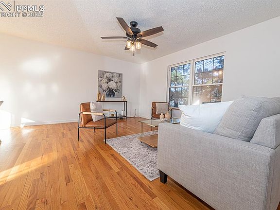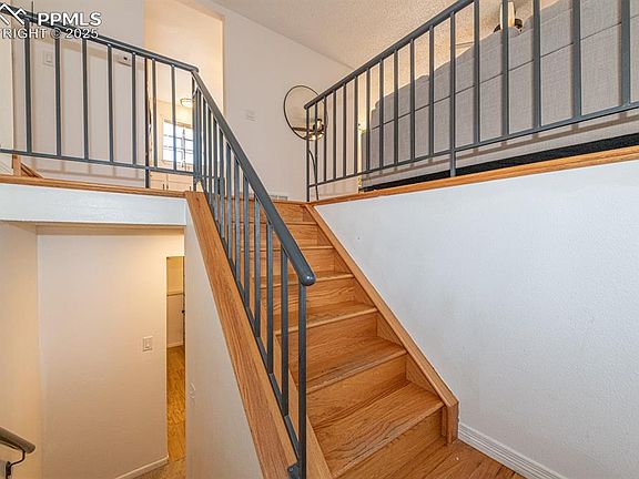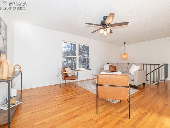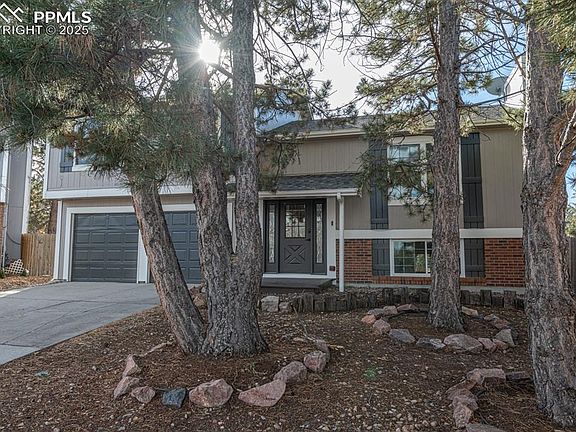 Welcome to this beautifully updated home nestled on a quiet cul-de-sac street, offering comfort, style, and sweeping views of the Front Range and iconic Pikes Peak. From the moment you step inside, you’ll appreciate the thoughtful upgrades and inviting layout designed for both everyday living and effortless entertaining. The main level features genuine hardwood floors and elegant wrought iron railing, complementing the bright dining room (10×11) and a well-planned kitchen (13×10) equipped with newer refrigerator and dishwasher. The spacious family room (13×16) offers a warm and welcoming gathering space, while the expansive 25×21 composite deck—perfect for entertaining—provides a stunning backdrop of mountain views. Upstairs, the primary bedroom (13×12) includes a walk-in closet, carpet, ceiling fan, and is connected to the bath. Two additional bedrooms (13×10 and 11×9), each with a ceiling fan, offer flexible living arrangements. The remodeled upstairs bath is a standout, featuring a quartz countertop, tile flooring, subway tile surround, an tile inset niche for shampoo, and a sun-filled skylight. The lower level delivers even more living space with a newly carpeted 22×14 rec room, ideal for movie nights, hobbies, or a play area. Practical improvements throughout the home include a new electrical panel (2024), a new hot water heater (2025), and fresh exterior paint (2025), adding peace of mind and lasting value. Outside, the large, level fenced backyard is perfect for pets, play, and outdoor enjoyment. The oversized 2-car garage (21×24) provides exceptional space for vehicles, storage, or workshop needs. Beautifully maintained and packed with meaningful upgrades, this move-in-ready home blends charm, function, and an unbeatable location. Don’t miss the opportunity to make it yours!