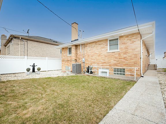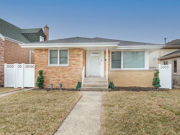 All brick ranch on an oversized 40' lot with a 3 car garage on a pleasant residential street in the Oriole Park neighborhood. It features an inviting living room, dining room, and a kitchen renovation (2017) with ceramic tile floor, quartz countertops, subway tile backsplash and Amish kitchen cabinetry. A convenient breakfast bar adjoins the dining space to the kitchen. The full bathroom renovation includes black and white ceramic tile, copper replacement piping and a linen closet. All three first floor bedrooms are generously sized and feature hardwood floors. The partially finished full basement includes a recreation space and fully renovated bathroom. The upgraded electric provide vehicle charging to the 3 car garage. A full privacy fenced yard provides abundant space for all outside activities. Improvements include: kitchen (2017), two bathrooms (2011), plumbing re-piping (2011), electric panel and wiring (2017 and 2022), new home roof and garage (2022), 3 car garage (2007), new gutters and soffit (2022), HVAC (2014)