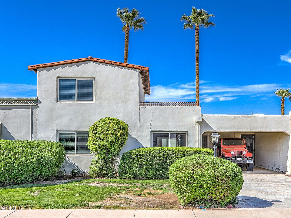 Welcome to Villa Monterey, where history meets high style! This gutted and fully remodeled townhome is a true showstopper—thoughtfully reimagined from top to bottom with designer flair & a bright modern layout that makes life easy & beautiful. With 3 spacious bedrooms and 3 full baths, this home offers room to spread out and live comfortably. Two of the bedrooms, including the primary suite with a sleek walk-in shower, are conveniently located downstairs—perfect for guests, family, or long-term ease of living. Step outside to your oversized covered patio—ideal for entertaining & relaxing under the Arizona sky. Villa Monterey is one of Scottsdale's most sought-after historic districts, known for its timeless charm, walkability, and sense of community. Additionally, the community features a charming ramada and pool area, where neighbors gather for year-round events and social gatherings.