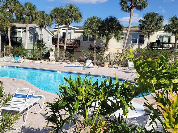 The "Salt Life" lives here! This lovely 3 bedroom, 2 bath townhome at Marina Palms is located minutes from a public boat launch, which provides access to the Gulf of Mexico and the Cottee River, where you can enjoy a short water ride to soak up the fun and sun at locations such as Green Key Beach, Hudson Beach, and the Tarpon Springs Sponge Docks! There are many waterfront restaurants/bars, shopping centers, and entertainment spots nearby, and Tampa International Airport is approximately 40 minutes away. Enjoy leisurely resort-style living at Marina Palms, featuring amenities such as a clubhouse, heated pool and spa, and scenic walking paths. The low monthly HOA fee of only $185 offers great value, covering the essentials of lawn care and trash pickup, plus maintenance for the community pool, hot tub, general landscaping, exterior pest control, and periodic exterior washes. The ground floor is all garage; it is a huge 4-car tandem garage with plenty of room for cars, boats, jet skis, or simply to use for storage. The second floor is all living area which encompasses high tray ceilings, 3 bedrooms, 2 full bathrooms, a living room and dining area, with a laundry closet and a breakfast bar in the kitchen. This home is an especially good opportunity if you are looking for a great investment, as there is already a very good tenant in place. Don't miss out on this "salt life" home in an incredible location! The roof was replaced in 2023, and the A/C was replaced in 2022. Schedule your private showing today!