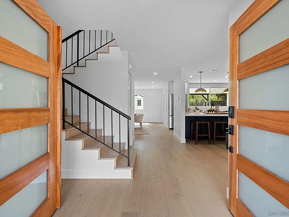 Step inside this thoughtfully reimagined La Costa gem—where modern design, comfort, and style come together seamlessly. The open-concept layout is anchored by a stunning new kitchen featuring sleek porcelain countertops, stainless steel KitchenAid appliances, and a custom arched bar with open shelving. White oak engineered hardwood floors flow through the spacious dining area and sunlit living room, creating an inviting space that’s perfect for everyday living or entertaining. Upstairs, you'll find four generously sized bedrooms, including two primary suites. The main suite is a true retreat, complete with vaulted ceilings, a marble-tiled spa-like bath, and a walk-in closet. Situated on a large, private .3-acre lot, the backyard is a dream for families and entertainers alike—with plenty of room to spread out, a charming play structure, and a large storage shed for added convenience. Tucked into a quiet neighborhood with no HOA, you’ll enjoy top-rated Encinitas schools and easy access to great shopping, dining, and world-class beaches. A rare find that truly checks every box—come see it for yourself!