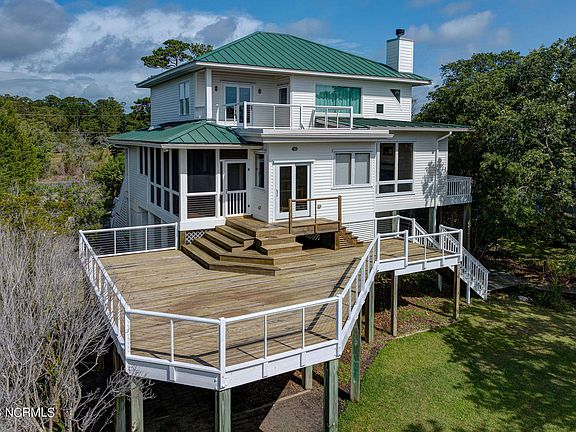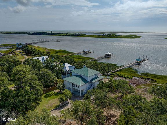 Stunning home on the ICWW with dynamite views! Sit on one of the many decks and take in our breathtaking NC sunrises. Private pier with gazebo and floating dock beg for some outdoor fun with a boat or a jet ski or maybe even both. Bright and open floor plan with large kitchen island, recently renovated, is a dream and is perfect for hosting an array of gatherings. Spend cooler days in front of the cozy gas log fireplace located in the living room. Retreat from your day to the spacious primary bedroom complete with en suite with large tub ready for full relaxation. With so many more unique features, you really must see it in person! Private road to home does not have a recorded maintenance agreement.