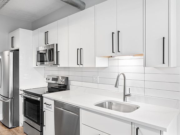 Modern white kitchen cabinetsAll-in-one in unit laundryDesigner plank flooringDog walk zone