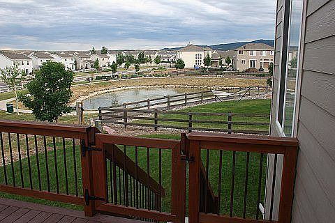 Beautiful 5 bedroom, 4 bathroom home in Roxborough. Backs to lake with bike/walking path. Walk to the park or community pool right from your backyard. Incredible mountain views from master bedroom. This home was professionally painted last year with custom colors throughout. Hardwood floors on main level with enormous Trex Deck in backyard. The basement was finished in August 2008. 9 foot ceilings make for a very open feel. Complete with full bath, media area, and office/hobby room. The master suite has a separate sitting/media/nursery area with fireplace. Full five piece bathroom with jetted tub and walk-in closet. Oversized 3 car garage lets you park 3 cars and still have room for storage and a workshop. Professionally landscaped yard with giant red rocks to add authentic Colorado beauty. The home is located on a quite cul-de-sac with neighbor kids ranging in age from 1 to 12.