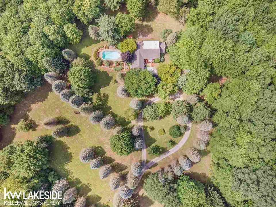 Absolutely private & tucked away this sprawling estate has charm and character thru out! The home is nestled over 1300 feet deep into the woods, once you arrive you will love the brick sidewalks, covered porch, and in ground pool! The home features a formal foyer with leaded glass sidelights, den with b-board, formal dining, and kitchen with eat in space. The living room offers a natural fireplace with large bay window and built in cabinetry. First floor master bedroom & laundry give function to the layout while the 2nd story features 2 large bedrooms & a full bath. In addition to the over 2400 square feet of living space the home features approximately 1000 sq. feet of finished basement with living area, dining, wet bar, and natural fireplace with wood burning insert! Watch the wildlife from the deck area overlooking the pool. The attached 2 car garage features 220 electrical. New roof 2010, furnace 2015, pool pump 2019, pool cover & filter also 2019.