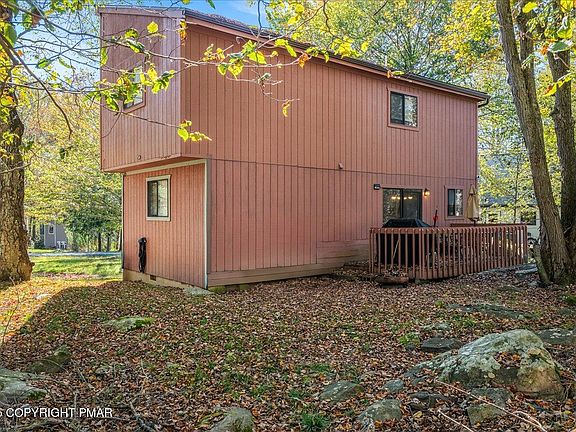 Nestled in the heart of the amenity rich gated community of A Pocono Country Place, this fully furnished 3 bedroom 2 bath contemporary style home offers the perfect blend of comfort, character, and convenience. Whether you are looking for a full time residence, a weekend escape, or an investment opportunity, this versatile home has it all. Step inside to a warm and welcoming living area featuring vaulted ceilings and a cozy brick fireplace, ideal for relaxing after a day spent exploring all the Poconos has to offer. Large windows fill the living room with natural light, creating an inviting atmosphere. The kitchen is both stylish and functional, complete with stainless steel appliances, rustic wood cabinetry, and ample counter space for cooking and entertaining. Upstairs, you will find a private primary suite with its own balcony, a peaceful spot to start your day. The loft area offers flexible space, perfect for a home office, reading nook, or additional guest accommodations. Step outside to the backyard, where the back deck is perfect for summer barbecues, outdoor dining, or simply stargazing on quiet Pocono nights. Living in A Pocono Country Place comes with access to a wide range of community amenities including 24/7 gated security, serene lakes, swimming pools, sports courts, playgrounds, and even a dog park for your furry companions. All of this just minutes from top area destinations like Kalahari Resort, Camelback Mountain, Mount Airy Casino, and outlet shopping. Don't miss the chance to make this cozy Pocono retreat your own. Schedule your private showing today and start enjoying mountain living at its best.