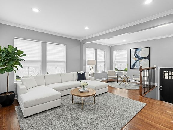 A stunning remodeled brick bungalow blending timeless charm with modern sophistication. This extraordinary residence offers Wi-Fi enabled exhaust fans, four spacious bedrooms and four full baths, including the rare luxury of two private master suites, designed for ultimate comfort and privacy. The main level welcomes you with gleaming original hardwood floors, an airy living and dining room, and a chef-inspired kitchen featuring a statement island, granite countertops, and custom cabinetry. A serene primary suite and an additional bedroom complete the level. Ascend to the full-floor attic retreat, where an expansive master sanctuary awaits. The finished lower level extends the home's living space with a guest bedroom, spa-like bath, inviting family room, wet bar, and a large, thoughtfully designed laundry room. Outdoors, discover a lushly landscaped backyard oasis, ideal for both elegant entertaining and peaceful relaxation, paired with a two-car garage and brand-new concrete work. Situated on a tranquil, tree-lined block, this residence offers the perfect harmony of refined living and modern convenience.