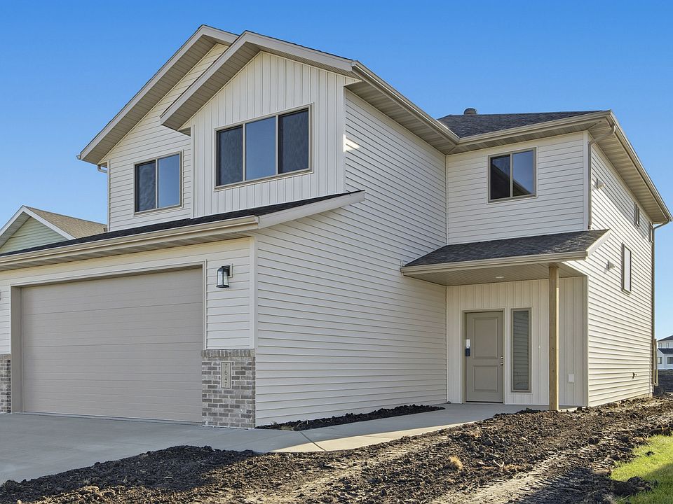 HOLIDAY PROMO: Builder has reduced this home by $25K for a limited time! Or secure 2025 pricing for a spring build plus lock in a $25,000 additional promotion to use as you wish! This new "Riviera" floor plan backs to creek on 210' deep lot with four bedrooms up plus loft and no basement! Slab-on-grade 2 story in the Cub Creek development of Horace has a light and bright main level with 9' ceilings and no-step entry. Four bedrooms up includes an owner's suite that has a private bath with double sinks and large walk-in closet. Additional full bath, loft, three bedrooms and laundry room up! Main level living includes beautiful kitchen with quartz island plus a huge walk-in pantry! Enjoy upgraded dual zone heating and cooling for comfort. Insulated garage with floor drain.