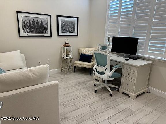Available for long or short term lease! Luxury coastal retreat found! This stunning two-story, three-bedroom + office furnished rental is located just a block from the ocean offers the perfect blend of opulence and style. As you enter, you're greeted by an airy open concept great room w/ chic coastal decor that creates a serene beach vibe. The spacious living area flows seamlessly into a modern kitchen, equipped with stainless steel appliances and huge island perfect for parties. Step outside through the tall glass sliding doors to the covered lanai and the sparkling pool. The first floor has primary suite features a larges, spa-like bathroom with soaking tub and separate shower plus The other bedrooms are on the second level + are designed for relaxation. A secluded office space provides the perfect work space.