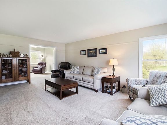 This picturesque ten acre equestrian estate will take your breathe away! Enter the property along the driveway lined with pines to this beautifully updated farm-style colonial set off the road. Sweeping vistas are provided from all rooms of the house of woods, pasture, and nature. This home was added onto and completely remodeled in 2013. The entryway features a storybook wrap-around Trex deck front porch, large pillars and barn-style garage doors. The large formal living area opens to the formal dining room. The kitchen has been beautifully renovated with everything from quartz countertops to stainless appliances, to custom cabinets and breakfast bar seating and is open to an eat-in area and cozy family room beyond. Upstairs are four large bedrooms including two spectacular separate master suites and three full bathrooms. The exterior is professionally landscaped with large boulders, delightful brick paver patio and flagstone walkway. The 36 x 40 foot outbuilding with 110 electrical, water and cement floor comes complete with four horse stalls, a storage area and a separate area for the tractor. White plank fencing, two pasture areas, and an 80 x 120 foot sand riding arena all come bundled with this slice of equestrian perfection