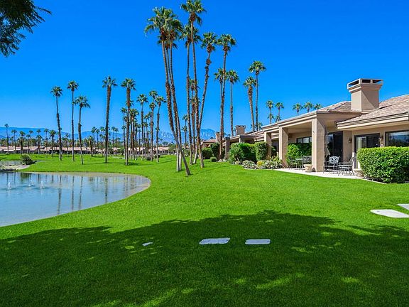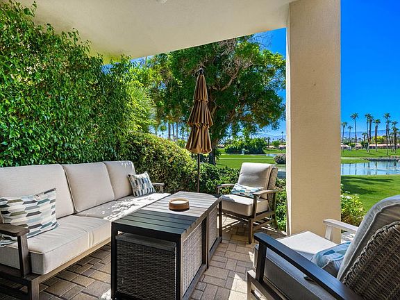 LOCATION, LUXURY, & LIFESTYLE!Stunning End-Unit Condo with Panoramic Mountain, Water & Golf Course ViewsSituated in a prime location with breathtaking southern panoramic views, this beautifully remodeled 3-bedroom, 2-bath end-unit condo (1,627 sq. ft.) overlooks serene lakes, the prestigious Championship Course Holes # 11, 12, & 13, and the iconic Palm Valley ''Signature Island Green.''Step inside to a modern, open-concept layout designed for seamless indoor-outdoor living and effortless entertaining. The upgraded chef's kitchen boasts custom cabinetry, quartz countertops, and top-of-the-line stainless steel appliances. Both bathrooms feature sleek, tiled walk-in showers and bidets, blending comfort with modern elegance.Other highlights include:Furnished per inventory - move-in ready or rental-readyInsulated garage with built-in cabinets for added storageExtended pavered driveway - rare, extra-long lot perfect for guest parkingPrivate golf course patio with unforgettable sunset and water viewsMature Argentine Mesquite tree offers natural shade & added privacyPie-shaped lot spacing - generous separation from neighborsEnjoy resort-style amenities in this vibrant community that allows short-term rentals, making it ideal as a full-time residence, vacation retreat, or income-generating investment. The Club offers a wide range of activities, social events, and fitness/lifestyle amenities to suit every interest.Don't miss this rare opportunity to own one of the best view locations in Palm Valley--perfect for year-round living or a stylish desert getaway!