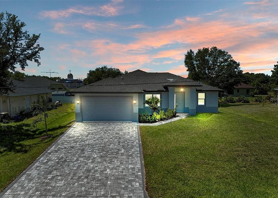 One or more photo(s) has been virtually staged. CITY WATER----MOVE-IN READY. NEW CONSTRUCTION. Welcome to the pinnacle of modern Florida living in this new-construction 4-bedroom, 2-bathroom home that effortlessly blends style, comfort, and functionality. Step into the open-concept living space, featuring laminate flooring and a high, coffered ceiling, creating an inviting atmosphere for daily living. The heart of the home, the beautiful kitchen, is a home chef's delight with an oversized island, quartz countertops, stainless steel appliances, modern light fixtures, and a convenient coffee bar – a perfect setting for culinary enthusiasts and entertainers alike. The master bedroom features a walk-in closet, standing shower, dual vanities, and direct access to the lanai, offering a tranquil retreat. The split floor plan provides privacy for guests, and a versatile flex space can be tailored to your needs, whether as a den, office, or sitting area. Safety is paramount with hurricane-impact windows, ensuring peace of mind during inclement weather. Outside, the custom lush landscaping not only provides privacy but also creates an idyllic backdrop to enjoy the Florida sunshine. The home is strategically raised, keeping it out of flood zones and contributing to lower insurance estimates. The lot offers additional privacy and has enough room for a swimming pool. Practical features include a laundry room, pavers in the front and back, full gutters, water filtration, and a well. Conveniently located with easy access to I-75 and South Tamiami Trail, this home offers proximity to local beaches and nearby attractions, making every day a vacation. Don't miss the opportunity to own this amazing property – schedule your private viewing today!