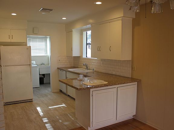 Remodeled 3 bedroom 2 bath 1347 square foot single story house. Updated kitchen features slab granite countertops, white subway tile backsplash, recessed lighting and new appliances. Hardwood floors throughout. central air/heat. Indoor laundry room. Two car attached garage. Refrigerator, washer, dryer included. Sunroom in no maintenance backyard. Close to schools, shopping and freeways. Renter pays utilities. No smoking. No cats.