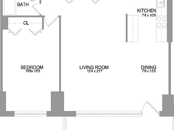 Great one bedroom with private terrace, open kitchen, and lots of storage space. This apartment also includes a distinct dining area that is also perfect for a home office.