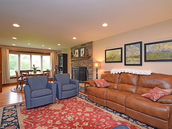 Amazing opportunity to own 4+ acres in this prime location! Charming home is nestled in privacy. Beautiful cooks kitchen with 42 in Decora cabinets w/granite. 3 oversized bedrooms. HW floors. Great room w/stone fireplace. 1st floor full bath. 4 season room with hot tub. Outdoor entertainment area with patio & fireplace. Great home for entertaining!