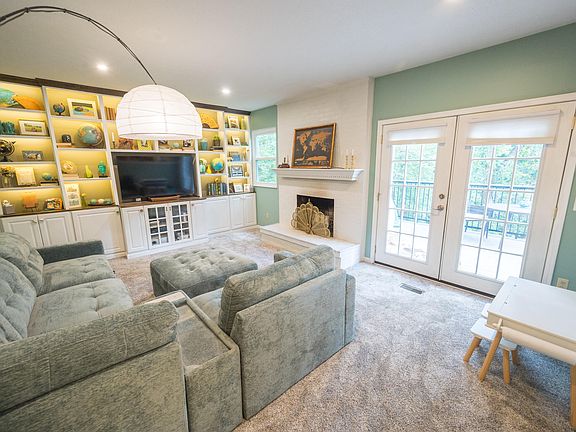 Feels like home the moment you walk in! 4 good sized bedrooms and 3.5 baths provide plenty of space. The cozy family room with wood burning fireplace features built-in bookshelves and a view to the deck with surrounding trees. The recently finished lower level is perfect for a work from home space, game days, or space to entertain friends. Step onto the updated composite deck and enjoy your own private, wooded backdrop—peaceful and perfect for morning coffee or evening get-togethers. Move-in ready and waiting for you! Owner improvements include HVAC 2020, newer windows, newer kitchen appliances, new carpet on main floor and stairs, finished lower level and bar, bookshelves in family room and more. Floorplan scan shows approx 2,366 sq ft. finished space.