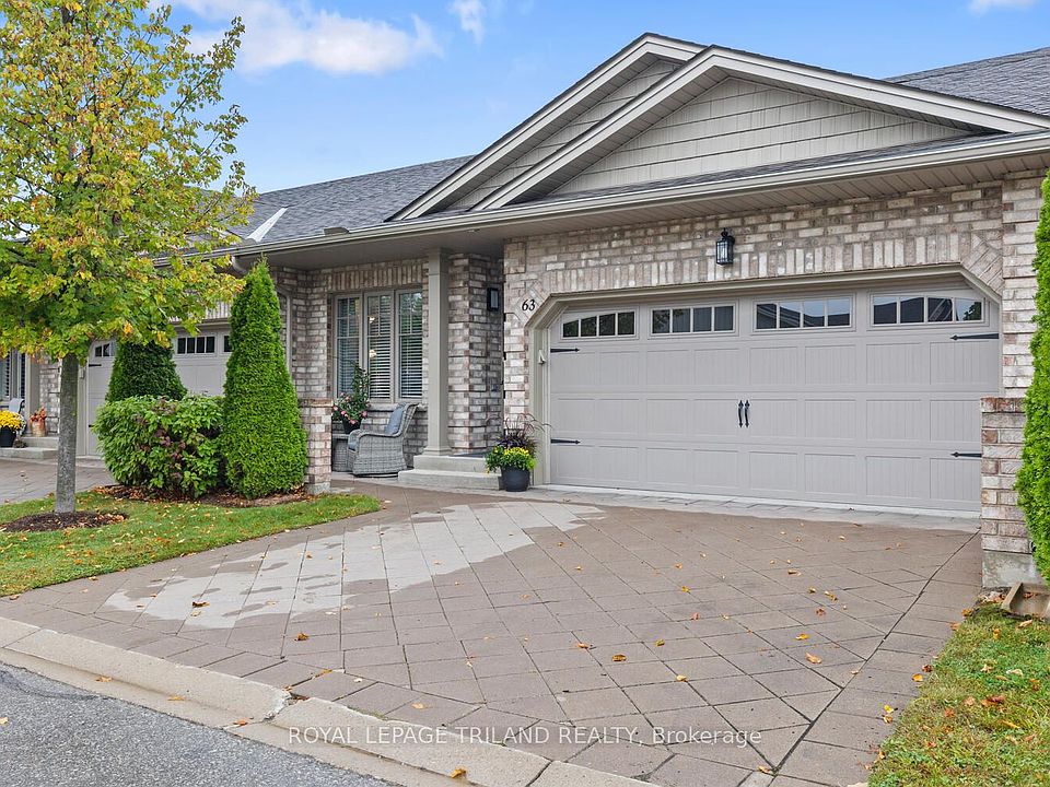 This meticulously maintained, single-level condo with attached 2-car garage offers comfort, style, and convenience in the peaceful River Trail community of northeast London. Enjoy nature and walking trails just steps from your door, ideal for daily strolls. Featuring over $66,000 in thoughtful upgrades, this 2+1 bedroom, 3-bathroom home has a bright, open-concept main floor with vaulted ceilings. The modern kitchen boasts a breakfast bar, granite countertops, tiled floors, stainless steel appliances, and dining space perfect for entertaining family or friends. The living room features gleaming hardwood floors, a cozy gas fireplace, and sliding doors leading to a private deck great for morning coffee or afternoon reading. The main floor includes a spacious primary bedroom with large custom double closets and full ensuite. A second bedroom, full bathroom, and convenient main-floor laundry complete this level, offering easy accessibility. The fully finished lower level is bright and welcoming, featuring large windows, a gas fireplace in the family room, a spacious third bedroom, full bathroom, and a large utility room with ample storage, including a built-in wine rack and custom epoxy flooring. Step outside to enjoy your beautiful front patio or the privacy of your back deck. Additional features include central vacuum and a double-car garage with inside entry for convenience. This wonderful location offers easy access to the scenic Thames River Trails, Kilally Meadows, and Fanshawe Conservation Area for year-round outdoor enjoyment. A strong sense of community makes River Trail a place people love to call home. Don't forget to join the weekly community happy hour meet up - a fun way to meet neighbours and enjoy a vibrant, friendly atmosphere. These units rarely become available because once you discover this amazing community, you never want to leave!