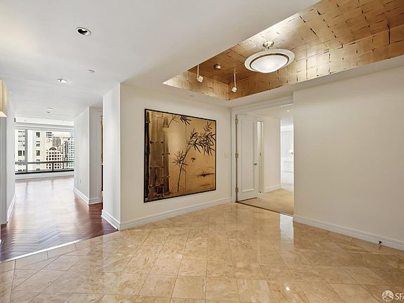 Rarely available combination of two corner units at the Four Seasons Residences. This expansive 3,554 sq.ft. home spans northeast to northwest, offering sweeping views from every room. This 3-bedroom + library, 4.5-bathroom residence features a grand double living room, formal dining, large entry foyer, and library with wet bar. The kitchen includes a breakfast room, SubZero refrigerator, Viking double ovens and cooktop, Miele dishwasher, and walk-in pantry. All bedrooms are ensuite. The luxurious primary suite includes dual marble baths and dual walk-in closets. Soaking tubs in primary and guest bath, marble floors and walls throughout, large walk-in showers, Brazilian herringbone hardwood floors, separate laundry room, powder room, and zoned heating/cooling. Owners enjoy legendary Four Seasons service: concierge, doorman, valet, guest parking, in-room dining, housekeeping, and access to Equinox Club with saline pool and spa. HOA includes earthquake insurance. Experience joyful living in the heart of the city within San Francisco's most pampered residential tower.