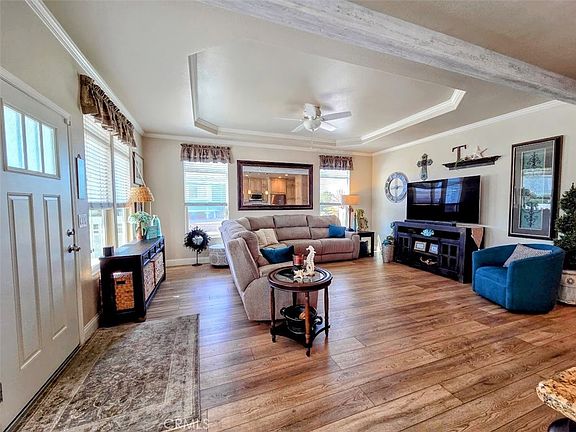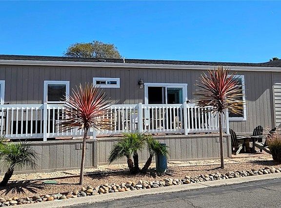 This Champion 2015 manufactured home has many upgrades and is gorgeous. With almost 1600 sq ft it shows like a model home and features 3 large bedrooms including a extra large primary suite with walk in closet, step in shower, granite double vanity and water closet for privacy. One of the guest bedrooms has French doors leading to a beautiful trek patio with plenty of room for outside entertaining. Recessed lighting, huge open floor plan with kitchen, living room and dining room. Small front porch, home faces south west & with the sun setting and all the lovely windows, the home receives ample light most of the day & the sunsets are incredible. The kitchen features a huge granite island, wine refrigerator & tons of storage in the kitchen & laundry room. This home shows love and care and is maintained beautifully. Covered carport for two vehicles, auto irrigation for landscaped yard, fire pit outside by deck and grassy fenced back yard which backs up to the beautiful greenbelt of Mesa Dunes. Vinyl flooring through out except bedrooms are carpeted. Purchase price includes stove, dishwasher, wine refrigerator & built in microwave and firepit. Located near the Historic town of Arroyo Grande, World Class Wineries & the Pacific Ocean. RV storage is available (additional fee). Mesa Dunes is a quiet all age community (child and pet friendly). It's located on the Mesa above Arroyo Grande and is close to the Village. The park is beautifully maintained with ocean views, two swimming pools (one heated year round), two clubhouses with full kitchens, a jacuzzi, gym, billiards, ping pong table, playground, greenbelt, walking trails, half basketball court. Buyer must be approved by park management, verify new space rents which may increase 10%, lease, rules & regulations. Current BASE space rent is $1314.76 and includes water, sewer & trash which is based on your usage monthly. Mesa Dunes is a great place to live with ocean breezes and friendly people.