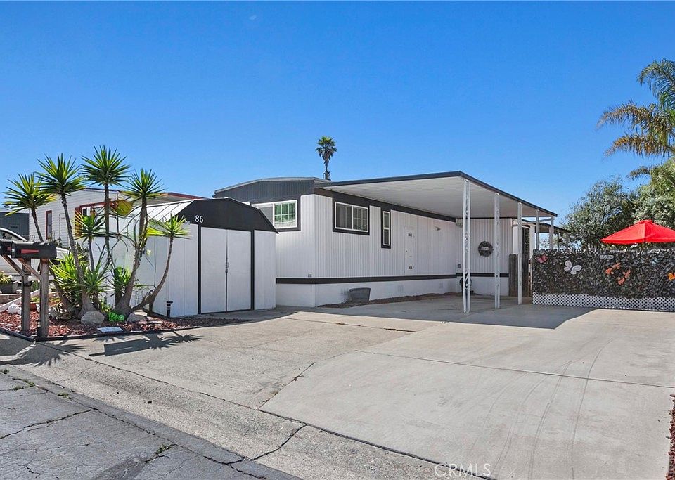 Step into a charming and immaculately maintained mobile home that offers exceptional value within the desirable Mesa Dunes Mobile Home Estates. Newer, energy-efficient, dual-pane windows fill this home with abundant, natural light, creating a bright and cheery atmosphere. The expanded, welcoming living room flows seamlessly into an updated, modern kitchen featuring a convenient breakfast bar. This coastal retreat includes two bedrooms and two bathrooms, thoughtfully situated on opposite ends for maximum privacy. The primary bedroom offers a peek-a-boo ocean view, inviting you to enjoy a moment of tranquility. The generous, fenced yard provides a private oasis for leisurely outdoor entertaining and is perfect for pets. The home also backs onto a quiet greenbelt, offering even more seclusion. There’s ample parking for four or five vehicles. All essential appliances and a handy storage shed are included, making this home move-in ready. Some furnishings may also be negotiable. All prospective buyers must be approved by park management. Space rent projected to be $1,850 per month to new owner.