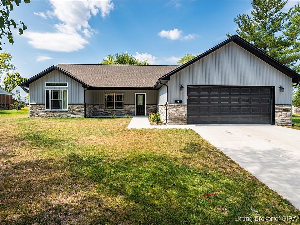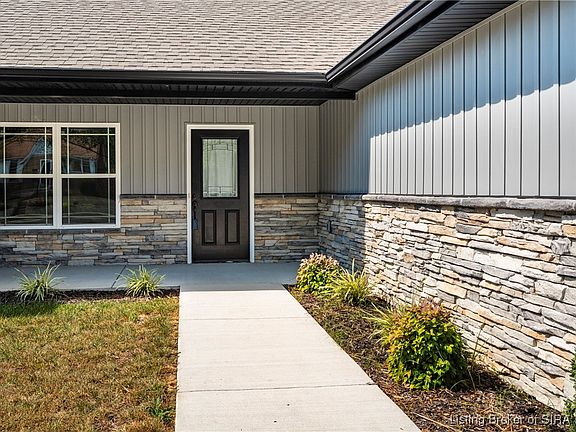 Nearly brand new home in the heart of Charlestown. Modern vinyl and stone exterior. Covered front porch perfect for sitting and watching in this well established area. Open floor plan with vaulted ceilings and luxury vinyl flooring. Kitchen includes a walk in pantry and breakfast bar. All kitchen appliances are included. Master bedroom has trey ceiling and includes a walk in closet and en suite bath. Location is close to schools and parks and has easy access to the east end bridge. Don't miss your chance! Schedule your showing today!