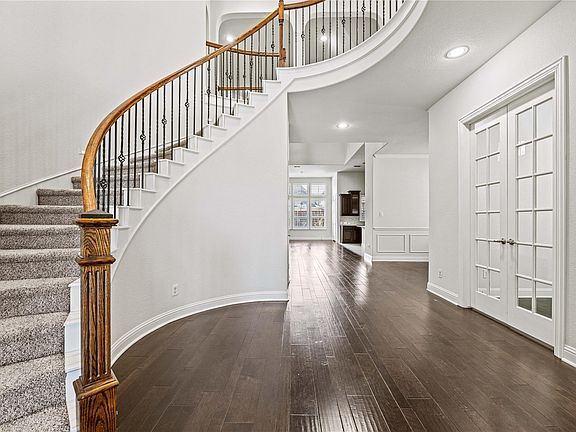Stunning Frisco home with an impressive entryway into an open floor plan of a family room, kitchen, breakfast area and dining room. Did I mention there is also a home office, secondary bedroom with a full bath and a huge primary bedroom as well on the first floor. A beautiful wrought iron spiral staircase will take you upstairs to a large game room with a media room close by. An additional 3 bedrooms and 2 full baths are located upstairs away from the entertainment area. Kitchen is open with a large center island, stainless steel appliances, ample cabinets and walk in pantry. Enjoy the outdoor living space with the large covered patio. Additional privacy with an electric gate enclosing the yard 1-Year or longer