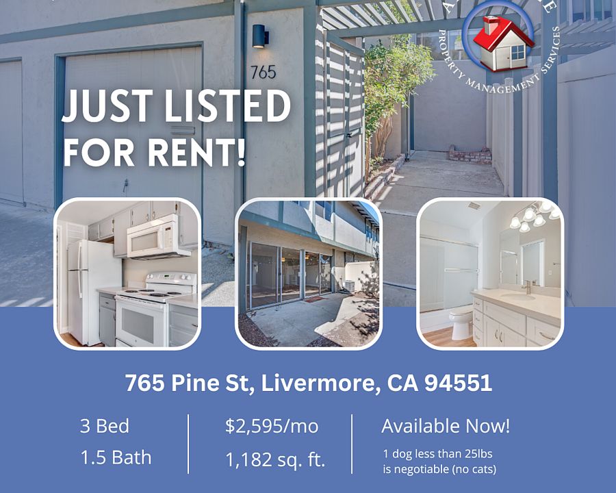 Don't miss this 3 bedroom, 1.5 bathroom townhouse, conveniently located near Downtown Livermore with easy access to I-580. This lovely home features a galley-style kitchen with new quartz countertops and plenty of cabinet space. There is a large family room with access to the spacious back patio. The property has a 1-car attached garage and an included washer and dryer.