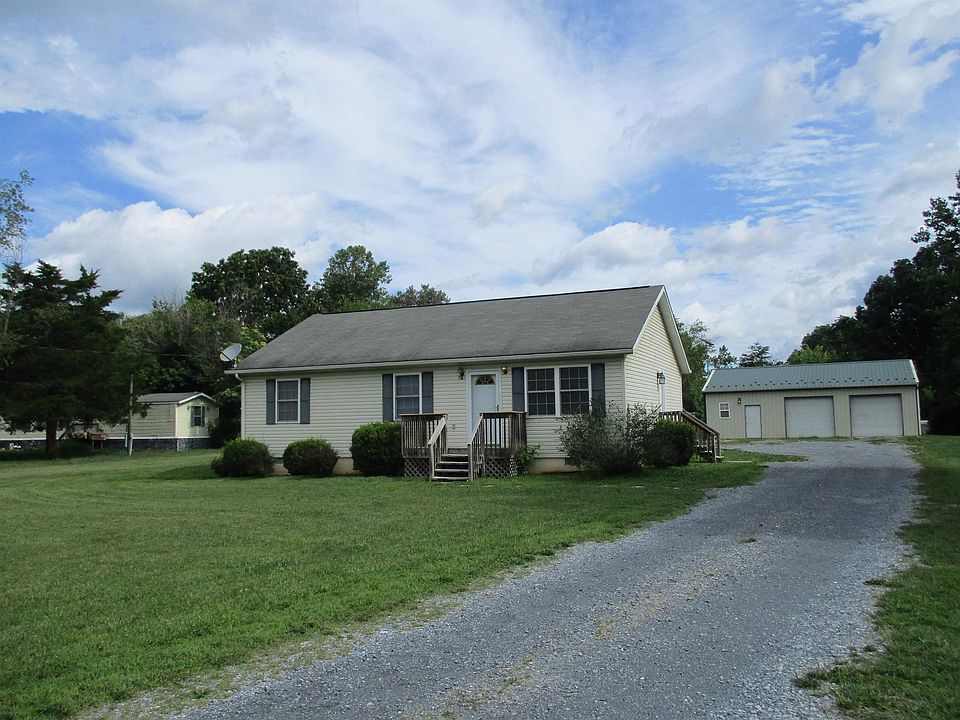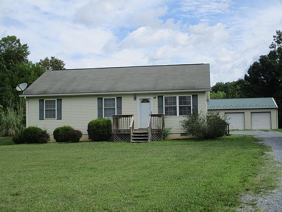 What a gem! Circa 2004, this home has so much to offer to include one level living, 3 bedrooms, 2 full baths, new laminate flooring and some new carpet. The kitchen has stainless steel appliances, lots of cabinet/storage space and conveniently located laundry area. Situated on a .86 acre lot that is nearly level, enjoy relaxing on the deck! There is a 1200 square foot 2-bay garage with overhead doors, electric, overhead outlets, hose reel for air hose and work benches! Make this your home and move in before Fall!