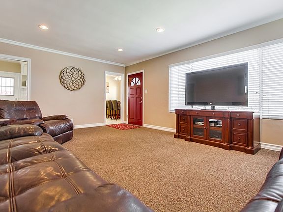 BEST BUY! This spacious one-level family home with plenty of upgrades features a sunlit living area, large upgraded kitchen with eating area and a great floor plan. All bedrooms are very large. There is a fabulous master suite with a walk-in closet and large bathroom with separate shower and spa tub. There is also a junior suite that is oversized and includes a 1/2 bath. This is a great home for a large or growing family or maybe a family that needs room for an extended family member. Interior is move-in ready and the exterior is well-maintained and low maintenance. Other upgrades include dual-pane vinyl windows throughout, new forced air heating unit, vinyl fencing, recessed lighting and crown molding. There are two off-street parking spaces in front of the house and a 2 car garage on the alley in the back. Rear yard features a covered patio and lawn area. Priced right!