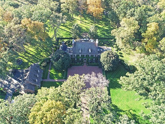A noteworthy Lake Forest residence privately situated on a five acre parcel adjacent to protected Open Lands property. Classic Georgian architecture, with symmetry and balance that is replicated on the front and rear facades. The grand entry foyer spans the width of the home, and leads directly out to the terrace and grounds. Architectural details are irreplaceable today. Millwork is a work of art. Formal rooms are grand, yet warm and welcoming. Exceptional updates have been made in the past two years to systems; heating, cooling, electrical, electronics, security, smart house technology, have all been brought to today's standards and beyond. Kitchen features LaCornue range, SubZero refrigerators, large island with tremendous storage and work space. Tranquil hearth room with fireplace and access to patios. 4 car garage and coach house apartment. Smart house technology. Exceptional.