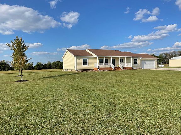Meticulously maintained home on 9.5 acres. This beautiful, updated home has a master suite with large shower, soaking tub and double vanity, along with a walkin closet. Two additional bedrooms, large living room with open concept kitchen and dining area. The kitchen has updated cabinets with granite counters. The house features central heat and air with a wood stove for alternative heat. There is a large shop 30 x 40 with 220 electric, a storm shelter, a patio and a fire pit area. There is a generator transfer so that you will never be without power. Craw Kan high speed internet is available for your streaming pleasure or if you work from home. Lots of updates including flooring, windows, baths, appliances and counter tops.