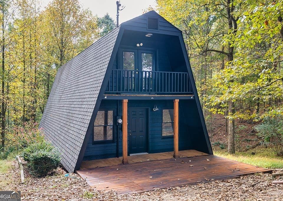 Welcome to this charming A-frame, 2 bedroom, 1 bath home. Recently remodeled with fresh carpet & paint. Located next to Sweet Acre Winery, you will love the mountain view from the entrance. Enjoy the countryside of the North Georgia Mountains on this winding road. Watch the deer from the back deck or stroll through the peaceful, wooded 1.69 acres with a spring fed stream. Relax by the fireplace in the family room with real Red Oak hardwood floors. The kitchen has newer Frigidaire appliances. The home has a newer roof with 30 year architectural shingles. Plus you have storage in the 18x26 outbuilding on a concrete slab. This property is convenient to Cornelia and Gainesville.