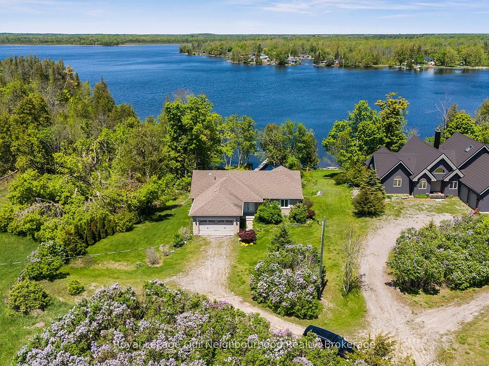 Lakeside living on Seymour Lake, part of the Trent Severn Waterway. This custom-built, all-brick bungalow is designed with comfort and function in mind. Set on a quiet dead-end road, bordered by a lot to the west that will remain undeveloped, the property offers over half an acre of privacy and 140 of waterfront. The open-concept main level includes a spacious kitchen with solid maple cabinetry, ample storage, stainless steel appliances, and a breakfast bar. Vaulted ceilings in the dining and living area add to the sense of space, while a propane fireplace and large windows bring in natural light and showcase the lake. The primary suite features a 6-piece ensuite, offering a private retreat. The finished lower level adds flexible living space with large windows, a family room, and an indoor hot tub. A walkout leads directly to the yard, lake, and private dock. Three additional bedrooms, plus a games room or potential gym, provide room for family and guests. Located just 1.5 hours from Toronto, 45 minutes from Peterborough, and a short drive to Campbellford for hospital services, shopping, and local amenities. A property well-suited for entertaining, relaxing, or enjoying life on the water.