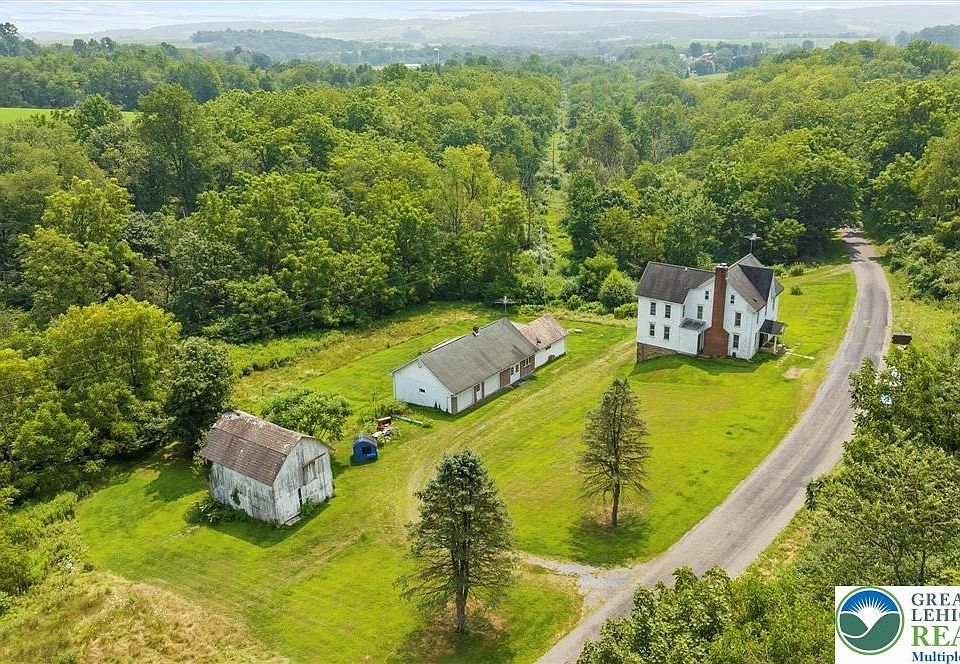 If you're dreaming of a quiet country lifestyle and ready to roll up your sleeves for a rewarding project, this unique property could be exactly what you're looking for! Situated on 7.15 scenic acres with partial woods and a tranquil stream, this expansive parcel includes two separate homes, ideal for multi-generational living, rental income, or creative redevelopment. The main home spans 2.5 stories above grade, plus a walk-out lower level, offering more than 3,000 square feet of versatile living space. Formerly an 8+ bedroom home, it’s ready for your redesign or simply update to your taste. Hot water baseboard heating in place, but a new boiler will be required. The second home is Move-in Ready and offers comfortable, single-floor living with an open-concept living, dining, and kitchen area, 2 bedrooms, full bath, and an oversized 2-car garage. Each home has its own septic system and shared well water. Floor plans available upon request. Located just 5 minutes from Northwestern Lehigh Schools, dining, and local conveniences. Property is being sold As-Is. This is a rare opportunity with endless possibilities!
