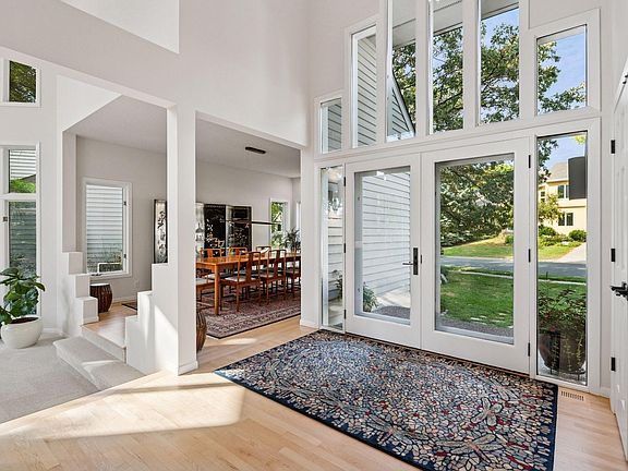Nestled in the desirable Bush Lake neighborhood of Bloomington, this striking two-story contemporary home with a walkout lower level blends architectural drama with modern comfort. Designed across three levels, the home features bold angles, expansive living areas, and ceiling-high windows that capture sweeping views of the surrounding woodlands. Just blocks from Bush Lake and Highland Park Reserve, this residence offers both a tranquil natural setting and easy access to local amenities. The main level showcases a beautifully refreshed interior with new paint, carpet, updated lighting, modern hardware, and refinished hardwood floors. At its heart is an updated eat-in kitchen featuring Corian countertops, new stainless steel appliances, and ample cabinetry. The kitchen flows seamlessly to a spacious deck, providing easy accessibility for outdoor dining, entertaining, or quiet evenings overlooking the private, wooded backyard. Adjacent to the kitchen, the family room centers around one of the home’s three fireplaces, offering warmth and connection for daily living. Upstairs, you’ll find four generously sized bedrooms together on one level, including a serene primary suite. This layout provides comfort and convenience for families, ensuring plenty of space without sacrificing accessibility. The home features four updated bathrooms, thoughtfully placed throughout, including one next to the lower-level guest quarters for added privacy. The walkout lower level offers remarkable versatility with two additional bedrooms, creating a total of six. This level also includes a dedicated office, a theater room perfect for movie nights, and a wet-bar area for entertaining. A fireplace adds cozy ambiance to the office, while large sliding doors open to the landscaped backyard, extending the living experience outdoors. Outdoor living is a highlight of this property. The deck—just off the kitchen—makes entertaining effortless, while the backyard and patio provide additional places to enjoy the natural surroundings. Mature landscaping enhances the curb appeal and complements the home’s wooded backdrop. With the serene woodland just behind the property, outdoor enthusiasts will love the abundance of nature along with the frequent visits from the local wildlife. This home is a true sanctuary! Location further elevates this home’s appeal. The Bush Lake area is known for its mature trees, recreational opportunities, and strong community spirit. Residents enjoy easy access to Bush Lake beach and park, Highland Park Reserve, and nearby shopping, dining, and entertainment options. With its striking design, extensive updates, six-bedroom layout, and unbeatable location, this home is truly a Bloomington gem.