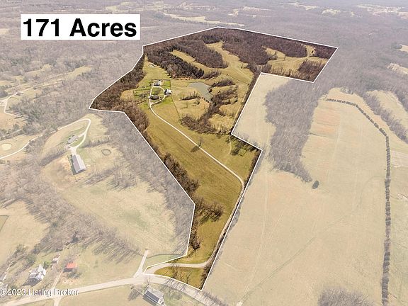Beautiful custom brick ranch surrounded by 171 well maintained acres lined by beautiful timbers and a flowing creek. The incredible property offers privacy along with all the natural beauty Kentucky is known for. Creeks, Steams, Lake, Ponds, and trails cut to access the outer areas of the farm. The home offers over 3,330 sqft of finished living space with 3 Beds including a primary suite, 3 full baths and open concept Kitchen, living and dining area. Off the main living area is a 264 sqft Florida room with incredible views. The finished walkout basement has lots of open space, family room, office, and a full bath. The property also offers a 54ft x 72 ft metal building with heated and cooled workshop, walk in refrigerator, water and electric and a shed roof off the side. There is also a 52ft x58 ft Dairy barn with water, electric, huge loft and additional workshop type rooms as well as an attached green house. Multiple other out buildings and fenced pasture areas. Words can't do this place justice you must see in person.