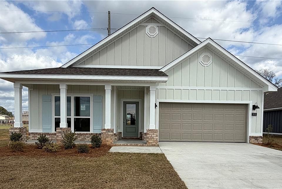 NEW CONSTRUCTION & MOVE-IN READY: Welcome to 7652 Anglebrook Road North in Mobile, Alabama, one of our new homes in Anglebrook. As you enter the community on Anglebrook Road North, this home will be on the left. The Dover is one of our one-story floorplans that has three bedrooms, an office/flex room and two full bathrooms offering over 1,900 square feet of comfortable space. As you enter the home, a short hall on the left leads to a bedroom, linen closet and a full bathroom with vanity and shower/tub combination. As you continue through the foyer there is a flex space that can be utilized as a study. Adjacent to the study is another short hall with a hall closet, access to the garage and entry to another bedroom. Ahead to the main living area, adjacent to the kitchen, is the laundry room that connects to the walk-in closet of the primary bedroom. The kitchen offers a wonderful layout for the home chef with an island and walk-in pantry. The shaker-style cabinetry, quartz countertops and stainless-steel appliances offer a clean, modern look. The kitchen is an open concept to the dining area which offers double doors to the covered porch. The living room is open and filled with natural light. The primary bedroom is located off the living area. The spacious bedroom has access to an ensuite the has a dual sink vanity with quartz countertop, standing shower and garden tub. For privacy there is a separate water closet and a large walk-in closet to accommodate just about any wardrobe. The walk-in closet has a door accessing the laundry room for convenience. The Dover includes a Home is Connected smart home technology package which allows you to control your home with your smart device while near or away. This home is also being built to FORTIFIED Gold HomeTM certification so see your Sales Representative for details.