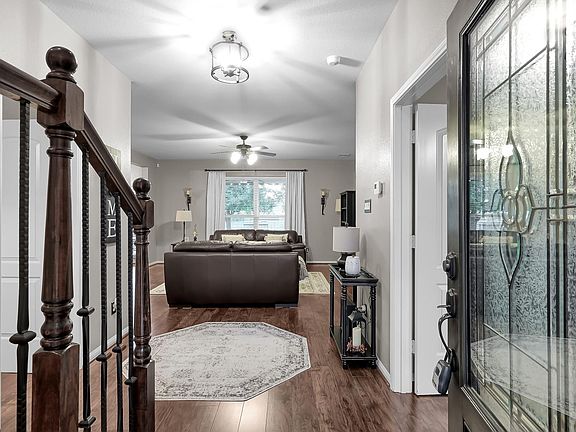 This beautiful home located in Chase Run has a wonderful open floor plan with a spacious kitchen with stainless steel appliances including refrigerator & granite countertops. The home features a spacious primary bedroom and ensuite located on the first floor with a garden tub, double sinks, separate shower & large walk-in closet. The 3 Bedrooms upstairs each have spacious walk-in closets. Covered back patio includes 2 celling fans, roll up sunshades, hanging party lights, mount for a TV that is pre-wired & cable ready with large, fenced yard that's great for entertainment & family gatherings. This home is fully equipped with home security system, 3 cameras,1 motion detector and glass break sensors. HVAC Condenser unit and the evaporator coils in the attic were replaced in 2022. Homeowners have access to excellent community amenities, such as walking trails and community park. Located just minutes from Lake Conroe, I-45, shopping, restaurants & multiple family entertainment venues.