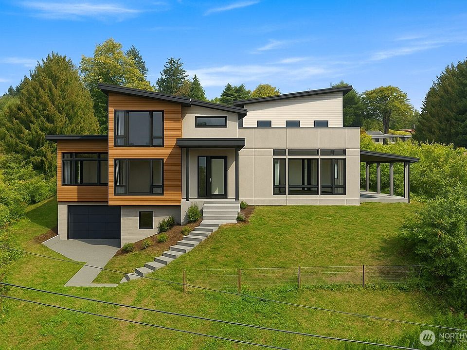 INVESTOR/BUILDER ALERT! Breathtaking 18,321 sqft lot, gently sloped to street, fully hedged for privacy & w/ stunning mountain views. Current home has had fire damage. Plans are complete for a 3,705 SF luxury residence w/ 4 beds, 3.5 baths, ADU & 6-car garage. Gourmet chef’s kitchen w/ oversized pantry seamlessly connects to formal living & dining, opening to expansive wraparound covered patio. Enormous primary suite w/ vaulted ceilings, vestibule, 5 Piece Bath w/ free standing tub & huge Walk-In Closet. Main level ADU w/ second kitchen vaulted ceilings living room bedroom, bath & washer/dryer. Panoramic views from living room & den Encompassing Mt. Rainier & the Valley. Grand & elegant stairwell w/ sweeping access to all levels.