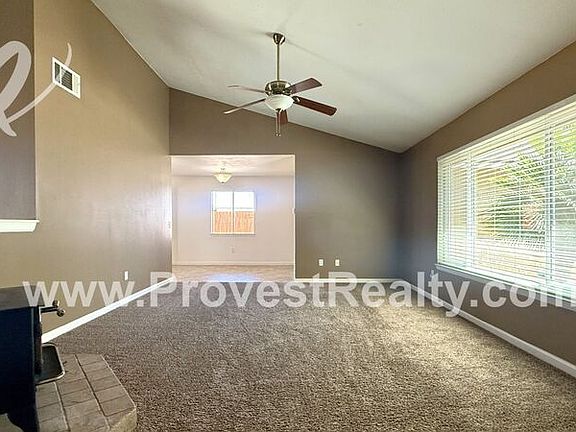 Welcome to this stunning 3 bedroom, 2 bathroom home located in the beautiful city of Hesperia!! Upon entering the living spaces, you're greeted with a warm ambiance provided by both a furnace and brick fireplace. Perfect for the chilly desert nights!! The open floor plan and vaulted ceilings enhance the spacious feel of the home. The tasteful mix of carpet, tile, and luxury vinyl plank flooring gives each room a unique touch. The kitchen boasts a range of modern amenities including a dishwasher, stove, and microwave for all your culinary needs. The primary bedroom also features a vaulted ceiling, two accent walls, and double mirrored closet doors that collectively elevate the space. The primary bathroom includes ample cabinetry and even a separate water room!! Additionally, the home has two guest rooms with adequate closet space and are adorned with tons of natural light. Enjoy the low maintenance/water landscaping and the large, fully fenced backyard with an outdoor storage shed which allows for organization, entertaining and relaxation. Washer/dryer hook-ups and two car garage offers convenience. Owner will provide salts for the water softener, as well as, maintain the trees. Close to schools, shopping and I15 and Hwy 395 for commuters. Sorry, no pets allowed. Lease term is twelve months. Renter's liability insurance required. Minimum deposit is equal to one month's rent; maximum deposit equal to two month's rent (when applicable).